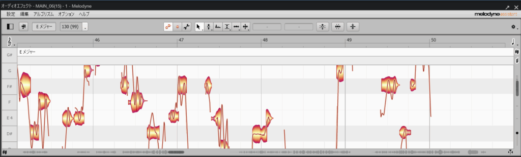 ピッチ補正と言えばの定番プラグインであるMelodyneを使用して元の音源を聴きながら調整していきます!
