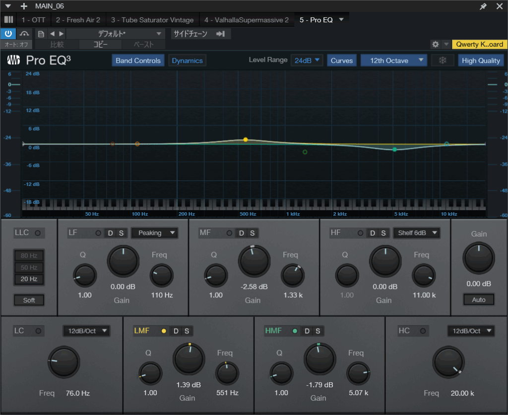 使ったのはstudio oneに元々付属している Pro EQです!